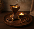 The Decorative Incense Burner is a stylish and functional piece designed to enhance your space with fragrance and elegance. Crafted with a wood-finish body and detailed gold-tone accents on the base, this burner is ideal for holding incense or bakhoor. Its elevated bowl design allows safe and effective burning while adding a luxurious touch to home décor.