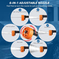 6-IN-1 Adjustable Nozzle: Switch between high-pressure jet, rinse, fan, wide angle, mist, and small fan spray modes.